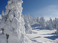 本格的な冬が訪れとともに、日本海から吹きつける北西の湿った季節風が、朝日連峰を越え蔵王のアオモリトドマツの林をホワイトモンスター(樹氷)の群れに変えて行きます。